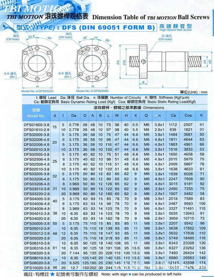 原装TBI滚珠丝杠DFSR2005的规格参数如下:
