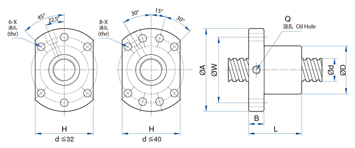 TBI滚珠丝杆SFU6320的安全使用: 润滑为使滚珠丝杠副充分发挥机能,在其工作状态下,必须润滑,润滑方式主要有以下两种: TBI丝杠SFU6320在使用时应注意以下事项: a.滚珠螺母应在有效行程内运动,必要时在行程两端配置限位,以避免螺母约程脱离丝杠轴而使滚珠脱落。 安装TBI滚珠丝杠副在安装时应注意以下事项: aTBI滚珠丝杠副仅用于承受轴向负荷。径向力、弯矩会使滚珠丝杠副产生附表面接触应力等负荷,从而可能造成丝杠的永久性损坏。因此,滚珠丝杠副安装到机床时,应注意:(1)丝杠的轴线必须和之配套导轨的轴线平行,机床的两端轴承座与螺母座必须三点成一线;(2)安装螺母时,尽量靠近支撑轴承;(3)同时安装支撑轴承时,尽量靠近螺母安装部位。 b.TBI滚珠丝杠安装到机床时,请不要把螺母从丝杠轴上卸下来。如必须卸下来时要使用辅助套,否则装卸时滚珠有可能脱落。螺母装卸时应注意以下几点:(1)辅助套外径应小于丝杠底径0.1-0.2mm;(2)辅助套在使用中必须靠紧丝杠螺纹轴肩;(3)卸装时,不可使用过大力以免螺母损坏;(4)装入安装孔时要避免撞击和偏心。 |
